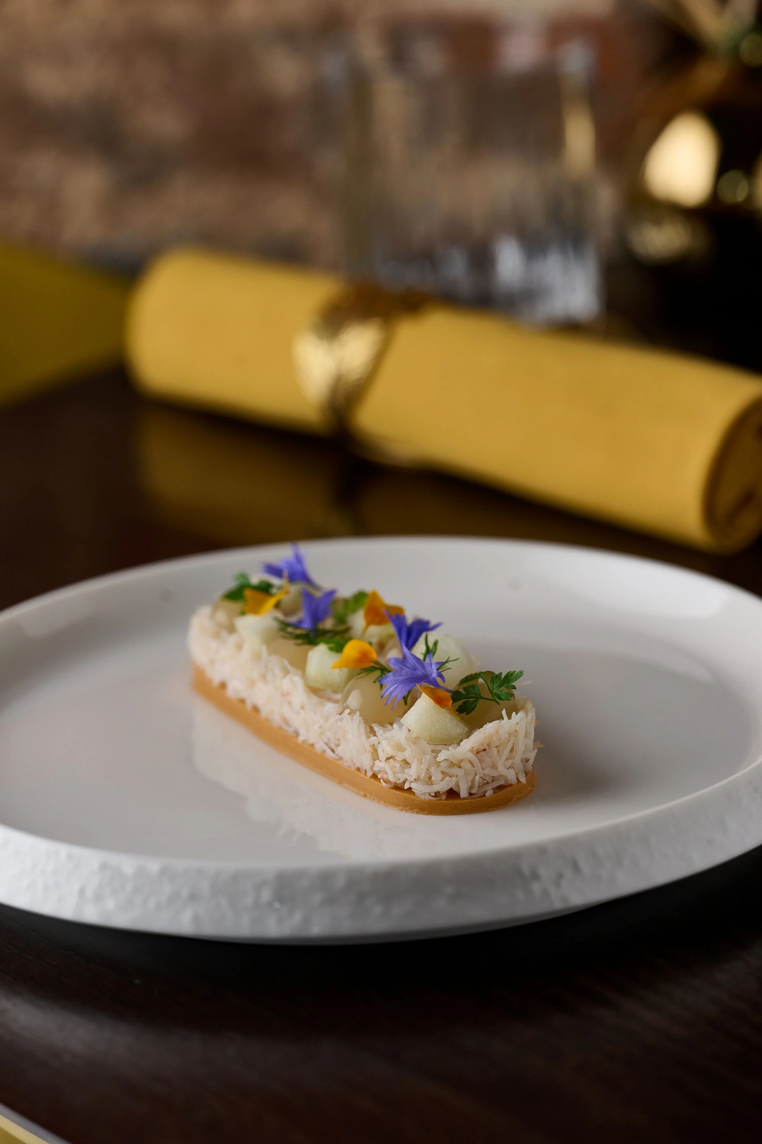 Our food A la carte Tasting Vegetarian Tasting Vegan Tasting Lunch Menu Festive Lunch Menu Snacks £7 Glazed Lamb Belly Greyhound Mint Gordal Olives Lemon Oil, Chilli, Herbs de Provence Roasted Cashew & Almonds Allspice, Maple Stilton Taco Broccoli, Red Onion Vadouvan Smoked Haddock Mango, Curry Leaves Starters £23 Braised Ox Cheek Chimichurri, Beef Tea, Onion £23 £22.50 Brixham Crab Granny Smith, Marigold, Chervil, Crème Fraîche £22.50 £17.50 Heritage Beetroot Pecan, Buttermilk, Walnut Ketchup £17.50 £18 Carrot & Star Anise Soup Coriander, Whipped Cream £18 £21 Confit Duck Leg Pierogi Lyonnaise Onion, Chive £21 £20 Severn & Wye Smoked Eel Parsley, Avruga Caviar, Kohlrabi, Brioche £20 £30 Truffle Cacio e Pepe Ravioli, English Pecorino £30 Mains £34.50 Guinea Fowl Breast Boudin Blanc, Leek, Pressed Thigh £34.50 £39 Rigby Venison King Oyster Mushroom, Muntjac Ragout, Blackberry £39 £33.50 Roasted Grey Mullet Cauliflower, Raisin Pickle, Curry Oil £33.50 £29 Salt Baked Celeriac Brown Rice Espuma, Black Garlic, Granny Smith £29 £38 Torbay Brill Sauce Véronique, Scallop Mousse, Tarragon, Grapes £38 £28 Woodland Tart Enoki, Maitake, Cauliflower Mushroom, Tarragon £28 Sides £7.50 Endive Salad Walnuts, Granny Smith, Celery, Colston Basset Fried Globe Artichoke Gherkins, Lemon Gnocchi Crispy Sage, Onion Greyhound Rosti Rosemary Salt, Roasted Garlic Mayo Hispi Cabbage Black Pepper Desserts £15 Callebaut White Chocolate Cheese Mousse Pink Grapefruit, Sablé £15 £16.50 Île Flottante Limoncello Custard, Sablé Breton, Amalfi Lemon Sorbet £16.50 £17.50 Pumpkin Soufflé Spiced Anglaise, Pumpkin Seed Ice Cream £17.50 £14.50 Williams Pear Cake Buckwheat Crumble, Cardamom Ice Cream £14.50 £13 - 3 Pieces / £18 - 5 Pieces Selection of British Cheese and Croutons £13 - 3 Pieces / £18 - 5 Pieces … Please inform us of any allergies or dietary requirements. Heritage Beetroot, Pecan, Buttermilk, Walnut Ketchup 2022 Viognier/Roussanne, Babylon’s Peak, Swartland, South Africa & Braised Ox Cheek, Chimichurri, Beef Tea, Onion 2018 Arbois, Domaine Rolet ‘Tradition’, Jura, France & Brixham Crab, Granny Smith, Marigold, Chervil, Crème Fraîche 2024 Riesling, Bodega Claro ‘Magnolio’, Colchagua Costa, Chile & £25 supplement Truffle, Cacio e Pepe Ravioli, English Pecorino 2022 Grenache, Willunga 100, McLaren Vale, Australia £25 supplement & Rigby Venison, King Oyster Mushroom, Muntjac Ragout, Blackberry 2018 Rioja Reserva, Miguel Merino, Rioja Alta, Spain OR Torbay Brill, Sauce Véronique, Scallop Mousse, Tarragon, Grapes 2021 Pinot Noir, Bachelder ‘Wismer-Parke’ 20 Mile Bench, Ontario, Canada & Seasonal British Cheeses 2023 Maury, Domaine Pouderoux, Roussillon, France & £110 Tasting Menu / £75 Matching Wine Pumpkin Soufflé, Spiced Anglaise, Pumpkin Seed Ice Cream 2021 Sartarelli ‘Passito’, Marche, Italy £110 Tasting Menu / £75 Matching Wine Pescetarian Tasting Menu available upon request. … Please inform us of any allergies or dietary requirements. Pescetarian Tasting Menu available upon request. Heritage Beetroot, Pecan, Buttermilk, Walnut Ketchup 2022 Viognier/Roussanne, Babylon’s Peak, Swartland, South Africa & Carrot & Star Anise Soup, Coriander, Whipped Cream 2021 Chardonnay, Tom Carson ‘Distant Noises’, Yarra Valley, Australia & Woodland Tart, Enoki, Maitake, Cauliflower Mushroom, Tarragon 2023 Godello, Alberto Orte ‘A Portela’, Valdeorras, Spain & £25 supplement Truffle, Cacio e Pepe Ravioli, English Pecorino 2022 Grenache, Willunga 100, McLaren Vale, Australia £25 supplement & Salt Baked Celeriac, Brown Rice Espuma, Black Garlic, Granny Smith 2023 Syrah/Cinsault, The 2018 Rioja Reserva, Miguel Merino, Rioja Alta, Spain & Seasonal British Cheeses 2023 Maury, Domaine Pouderoux, Roussillon, France & £95 Tasting Menu / £75 Matching Wine Pumpkin Soufflé, Spiced Anglaise, Pumpkin Seed Ice Cream 2021 Sartarelli ‘Passito’, Marche, Italy £95 Tasting Menu / £75 Matching Wine … Please inform us of any allergies or dietary requirements. Heritage Beetroot, Pecan, Walnut Ketchup 2022 Viognier/Roussanne, Babylon’s Peak, Swartland, South Africa & Carrot & Star Anise Soup, Coriander, Vegan Whipped Cream 2021 Chardonnay, Tom Carson ‘Distant Noises’, Yarra Valley, Australia & Woodland Tart, Enoki, Maitake, Cauliflower Mushroom, Tarragon 2023 Godello, Alberto Orte ‘A Portela’, Valdeorras, Spain & £25 supplement Truffle, Cacio e Pepe Ravioli 2022 Grenache, Willunga 100, McLaren Vale, Australia £25 supplement & Salt Baked Celeriac, Brown Rice Espuma, Black Garlic, Granny Smith 2018 Rioja Reserva, Miguel Merino, Rioja Alta, Spain & Vegan Cheese, Fig Loaf 2023 Muscat De Beaume de Venise, Domaine des Bernardins, France & 70% Callebaut Chocolate, Beetroot Crumble, Lemon Sorbet 2022 Corte Giara, Recioto della Valpolicella, Veneto, Italy £95 Tasting Menu / £75 Matching Wine … £95 Tasting Menu / £75 Matching Wine Please inform us of any allergies or dietary requirements. Starters Carrot & Star Anise Soup Coriander, Whipped Cream Confit Duck Leg Pierogi Lyonnaise Onion, Chive Severn & Wye Smoked Eel Parsley, Avruga Caviar, Kohlrabi Mains Guinea Fowl Breast Boudin Blanc, Leeks, Pressed Thigh Roasted Grey Mullet Cauliflower, Raisin Pickle, Curry Oil Woodland Tart Enoki, Maitake, Cauliflower Mushroom, Tarragon Desserts Callebaut White Chocolate Cheese Mousse Pink Grapefruit, Sablé Cheese Of The Day Williams Pear Cake Buckwheat Crumble, Cardamom Ice Cream £40 for 2 Courses / £49 for 3 Courses £40 for 2 Courses / £49 for 3 Courses Starters Tart Fine Chestnut Mushroom, Truffle Chicken Liver Parfait Victoria Plum, Brioche Smoked Salmon Buttermilk, Cucumber, Dill Mains Roasted Butternut Ancient Grains, Sage & Pumpkin Seed Pesto 4 Bird Roast Celeriac, Cranberry Poached Cod Champagne Beurre Blanc, Avruga Caviar Desserts Baked Alaska Dark Callebaut Chocolate, Cherry Ice Cream Douglas Fir Mousse Christmas Tree Meringue, Apple Sorbet Chees